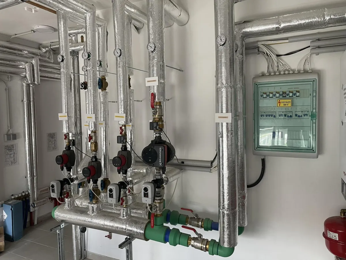 Az egyes épületek közötti hőenergia továbbítását Uponor távvezeték rendszer kiépítésével oldottuk meg, amely megbízható és hőtechnikai szempontból is korszerű megoldást nyújt. A rendszer kialakítása során kiemelt figyelmet fordítottunk az energiahatékonyságra, a fenntarthatóságra és a hosszú távú gazdaságos üzemeltetésre.