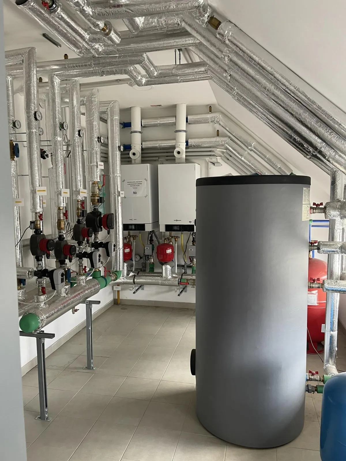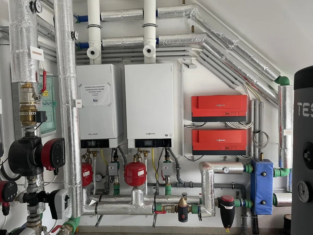 A fűtési-hűtési rendszert fan-coil technológiával építettük ki, amely biztosítja az egyenletes hőeloszlást és a komfortos beltéri klímát az épület teljes területén. Célunk az épület energetikai hatékonyságának növelése és az üzemeltetési költségek csökkentése volt, miközben a felhasználói komfortot is szem előtt tartottuk.